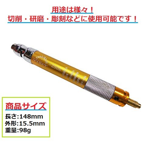 - エアーホース長さ : 120cm 切削、研磨、彫刻に使用可能