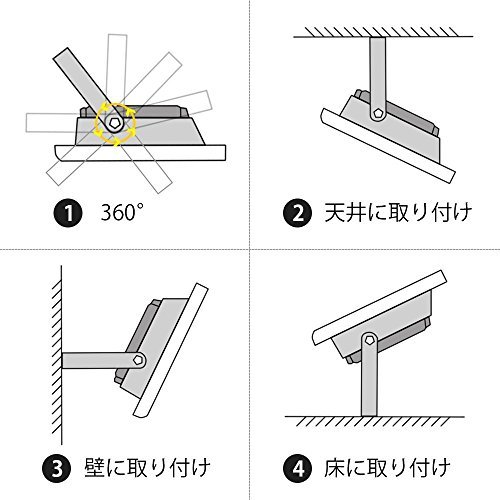 - 【強化材質】材質はアルミダイカストと強化ガラスで、強度と耐圧性が優れております。薄型デザイなので、設置することがとても簡単です。120度広角照明より広い範囲を照明し、工事現場や舞台照明などの場合は大活躍します。