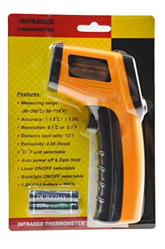 UPSLON 赤外線放射温度計 ガンタイプ 非接触レーザー温度計 コンパクト 非接触式 温度測定器 調理用 防水 デジタル液晶表示 単4電池対応 aaa 測定範囲-50℃~380℃