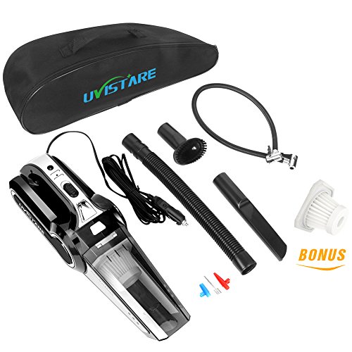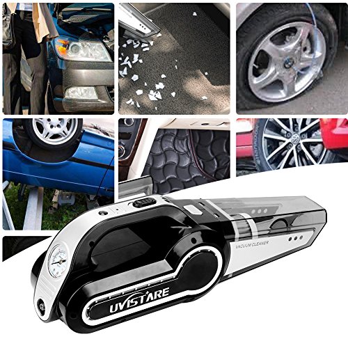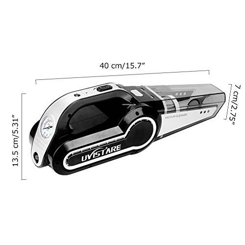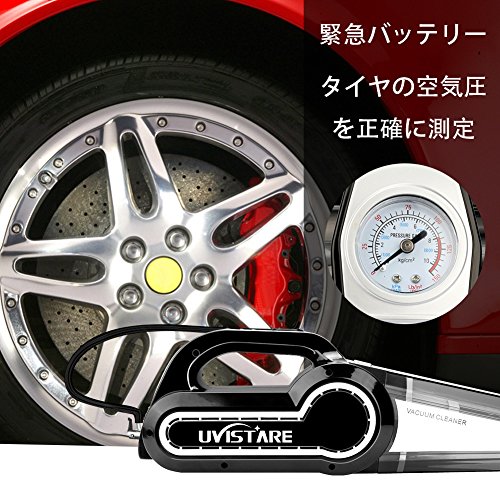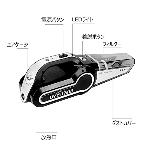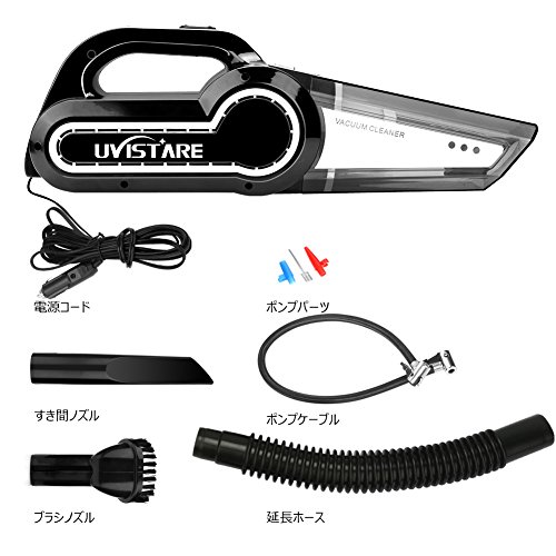 uvistare 車用掃除機 DC 12V 120W カークリーナー 空気入れ LED照明 ハンディクリーナー 4.5mロング電源コード シガーソケットプラグ 乾湿両用 超強吸引力 収納バック付き