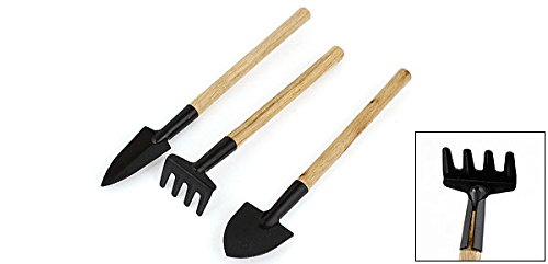 uxcell シャベル 花園ツールセット レーク シャベル 掘るスコップ 木製 メタル ブラック 小さい 軽い