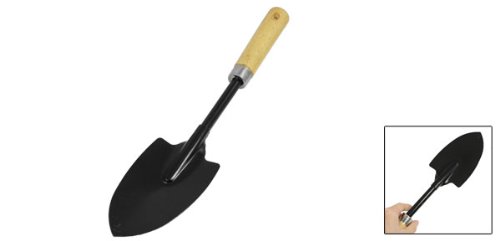 uxcell 園芸ショベル 木製のハンドル 黒金属 手工具 ガーデンショベル 全体の長さ37.2cm