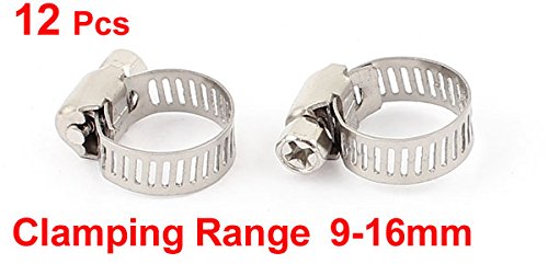 uxcell ホースクランプ ホースバンド ウォーム・クリップ 調整可能 ステンレス鋼 9mm-16mm のパイプ 12個入り
