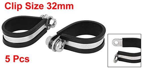 uxcell ホースバンド Pクリップ EPDMゴム付き 32mm 304ステンレス鋼 5個入り ブラック