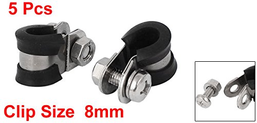 uxcell ホースバンド Pクリップ EPDMゴム付き 304ステンレス鋼 8mm 5個入り