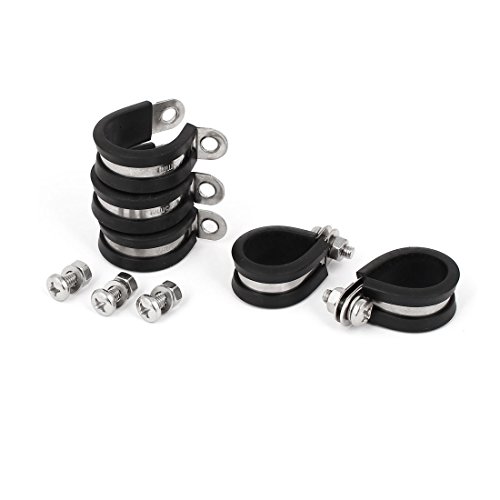 uxcell ホースバンド Pクリップ EPDMゴム付き 25mm 304ステンレス鋼 5個入り ブラック