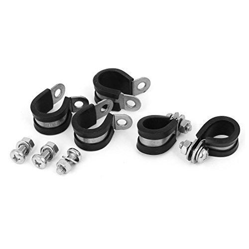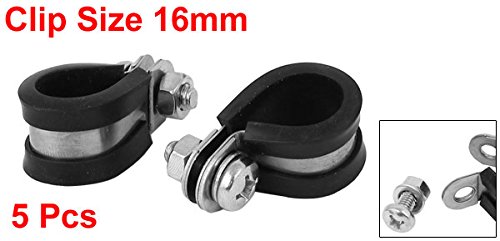 uxcell ホースバンド Pクリップ EPDMゴム付き 304ステンレス鋼 16mm 5個入り ブラック