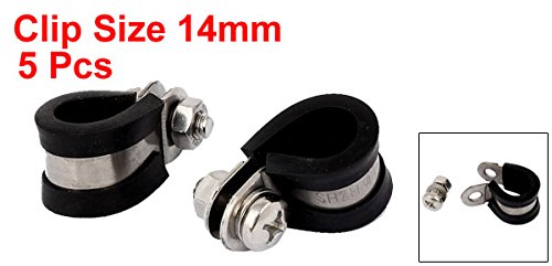 uxcell ホースバンド Pクリップ EPDMゴム付き 304ステンレス鋼 14mm 5個入り