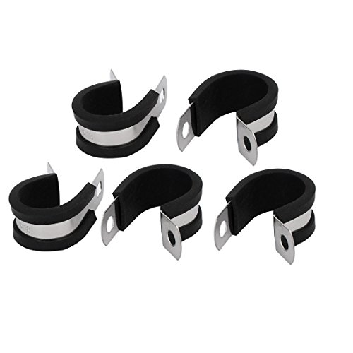 uxcell EPDMラバーライニングPクリップ ゴム 304ステンレス鋼 シルバートーン ブラック 18mm直径 5個入り
