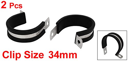 uxcell EPDMラバーライニングPクリップ ゴム 304ステンレス鋼 シルバートーン ブラック 34mm直径 2個入り