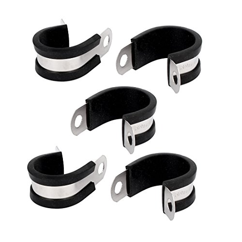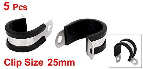 uxcell EPDMラバーライニングPクリップ ゴム 304ステンレス鋼 ケーブルマウント ホースクリップ 25mm 5個入り