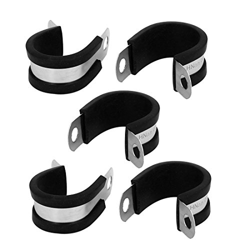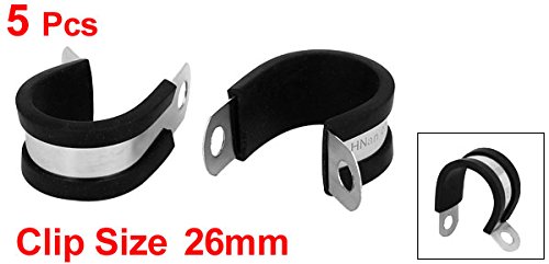 uxcell EPDMラバーライニングPクリップ ゴム 304ステンレス鋼 ケーブルマウント ホースクリップ 26mm 5個入り