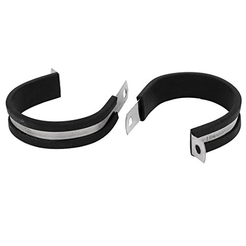 uxcell EPDMラバーライニングPクリップ ゴム 304ステンレス鋼 シルバートーン 48mm直径 ブラック 2個入り