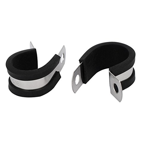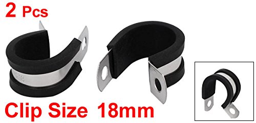 uxcell EPDMラバーライニングPクリップ ゴム 304ステンレス鋼 シルバートーン ブラック 18mm直径 2個入り