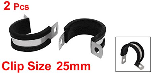 uxcell EPDMラバーライニングPクリップ ゴム 304ステンレス鋼 シルバートーン ブラック 25mm直径 2個入り