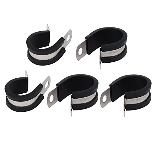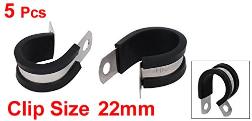 uxcell EPDMラバーライニングPクリップ ゴム 304ステンレス鋼 シルバートーン 22mm直径 ブラック 5個入り