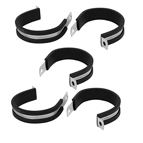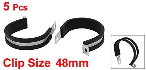 uxcell EPDMラバーライニングPクリップ ゴム 304ステンレス鋼 シルバートーン ブラック 48mm 直径 5個入り