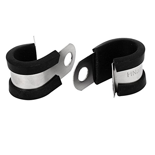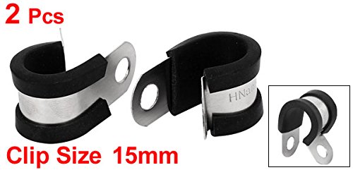 uxcell EPDMラバーライニングPクリップ ゴム 304ステンレス鋼 Pクリップ 燃料ホースガソリンパイプ用 ホースクリップ 15mm 2個入り