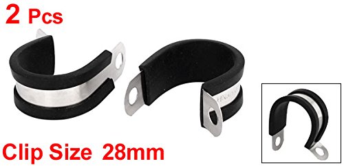 uxcell EPDMラバーライニングPクリップ ゴム 304ステンレス鋼 Pクリップ ケーブルマウント 28mm 2個入り