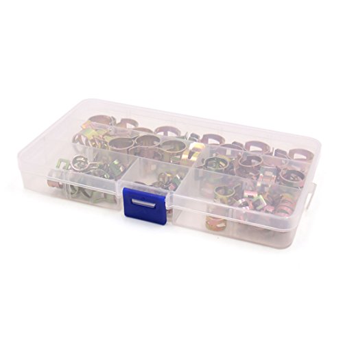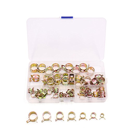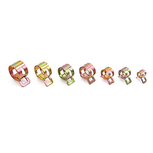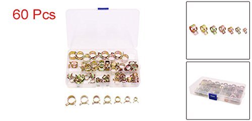 uxcell スプリング式ホースクリップ 銅トーン スプリング燃料 オイル ウォーターホース クリップ パイプ チューブ クランプ ファスナー 60個入り
