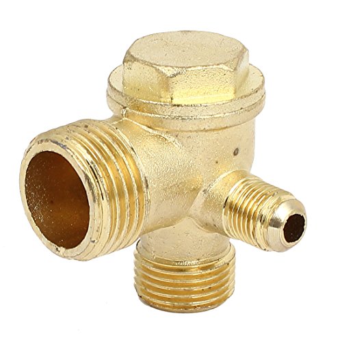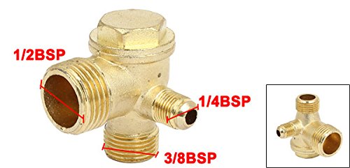 uxcell チェックバルブ 金属 エアコンプレッサー ゴールドトーン 3/8BSP x 1/2BSP x 1/4BSPオス ネジ