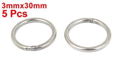 uxcell リング溶接 溶接Oリング ステンレス鋼 シルバートーン バッグキーホルダーキーホルダー用 5個 3mmx30mm