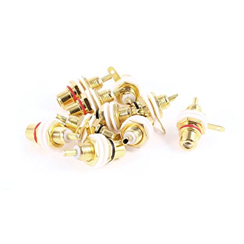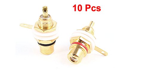 uxcell RCAメスバルクヘッドコネクタ メタル製ゴールドトーンホワイトレッド RCAメスプラグ コネクタアダプタ 10個入り