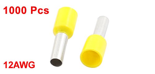 uxcell 絶縁スリーブ付棒端子 金属チューブ プラスチックスリーブ 事前絶縁スリーブ付棒端子 12AWGワイヤー イエロー 1000個入り
