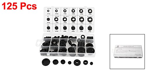 uxcell グロメット ワイヤーリング 連接リング ケーブルグロメットキット ゴム ブラック 21x 10 x 3cm 240g 125個