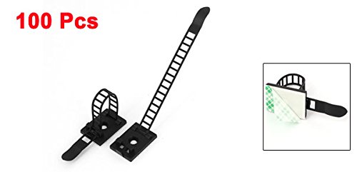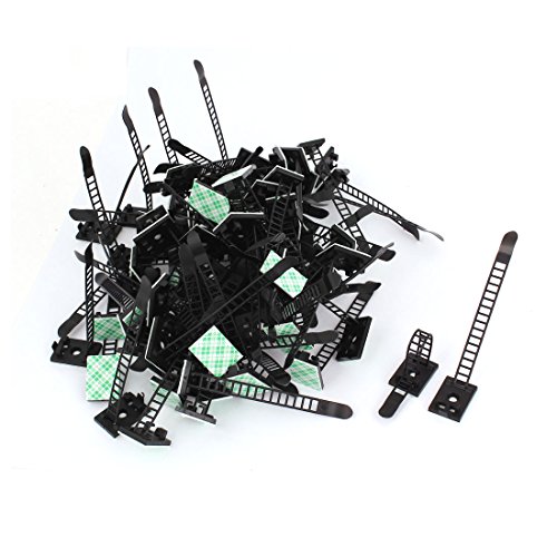 uxcell 調節可能なケーブル ワイヤ 固定 クリップ ホルダー プラスチック製 スティック ブラック 100個
