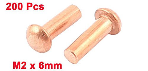 uxcell 銅ソリッドリベット フラットヘッド 直径2mm 長さ6mm ストレート 200個