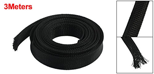 uxcell 編組スリーブ ブラック ナイロン 分離パイプ 幅20mm 長さ3M