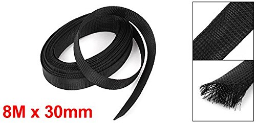 uxcell 編組スリーブ ケーブルハーネス 弾性 伸縮可能 ブラック ナイロン 8M長さ 30mm幅