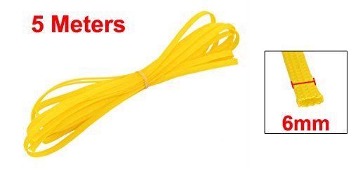 uxcell 編組スリーブ 拡張可能 PET イエロー 電設用アクセサリー 6mm直径 5M全長