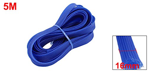 uxcell 編組スリーブ 拡張可能 ロイヤルブルー PET 16mm直径 5M全長