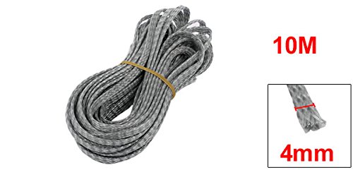 uxcell 編組スリーブ 拡張可能 PET ゴールドトーン ブラック 4mm直径 10M全長 電設用アクセサリー