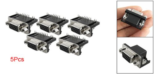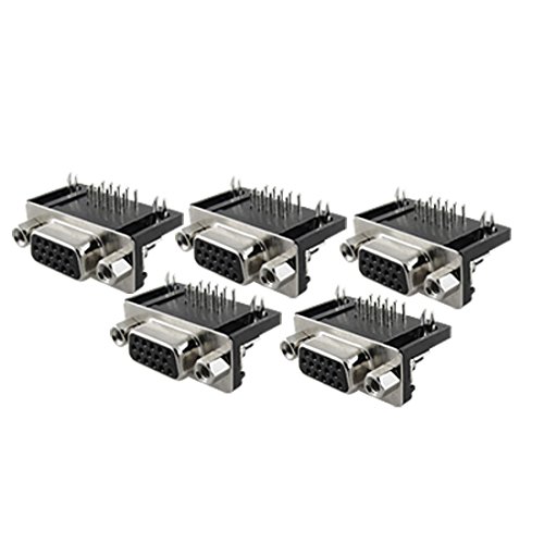 uxcell 5個入り シルバートーン ブラック 15ピン VGA メス ジャック ソケット