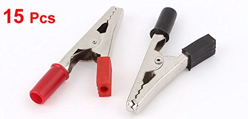 uxcell ワニテストクリップクランプ プリ絶縁ワニ 長さ 55mm ブラック レッド 15個入り
