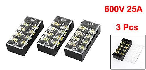 uxcell 電気端子バリアターミナルブロック スクリューコネクタバリアターミナルブロック デュアル行4P ブラック 3本入 600V25A