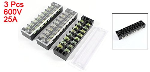 uxcell 端子台 電気端子バリアターミナルブロック スクリューバリアターミナルブロック デュアル行8P 3本入 600V 25A