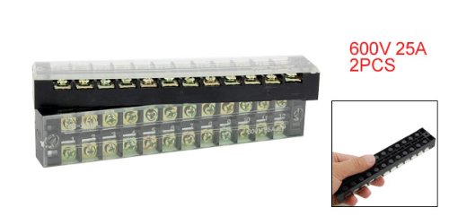 uxcell ネジ端子台 バリアターミナルストリップ 定格電圧 2列 12-ポジション 600V 25A 2個入り