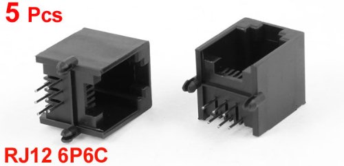 uxcell ネットワークコネクタ PCBジャック モジュラー LANイーサネット RJ12 6P6C 黒いプラスチック製 5個入り