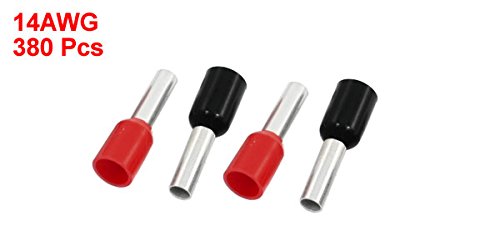 uxcell 棒状端子 絶縁スリーブ付棒端子 E2508 14 AWGワイヤ用 ターミナル レッド ブラック 2.6mm外径 380個入り