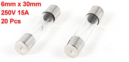 uxcellガラス管ヒューズ 20 Pcs 6mm直径 30mm長さ 15A 250V ガラス 金属 クリア 24g