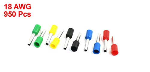 uxcell 絶縁スリーブ付棒端子 棒端子セット アソートカラー ワイヤーコネクタ E1008 1.0 mmケーブル 950個入り