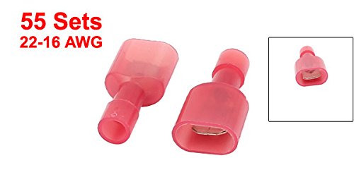 uxcell コネクタ 圧着端子コネクタ 絶縁ワイヤー オスメススペード 22-16 AWG レッド 55セット