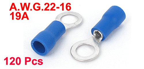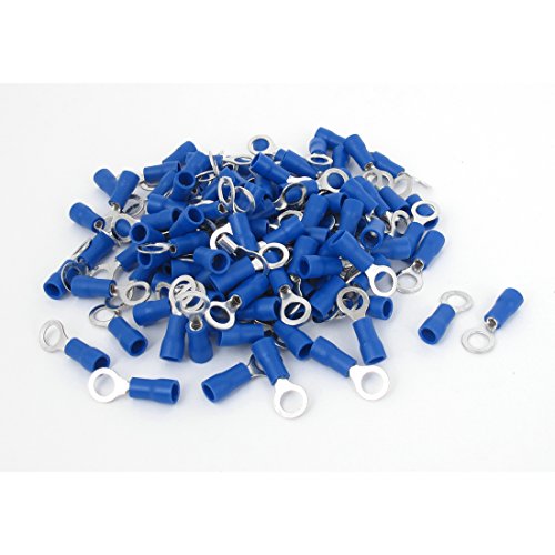 uxcell リングターミナル 電線圧着端子 車のパワー ブルー 120個 RVS1.25-5 22-16 AWGゲージ #10