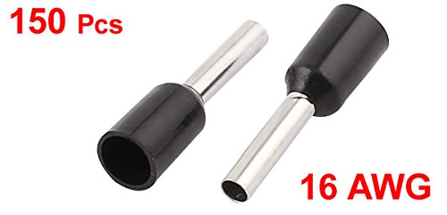 uxcell コード端端子 ブラック ワイヤー 銅 AWG16 絶縁フェルール 150個入り