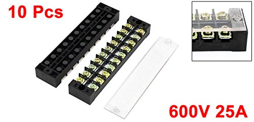 uxcell ネジ端子バリアブロック 10個入り 600V 25A 2行 10ポジション TB2510