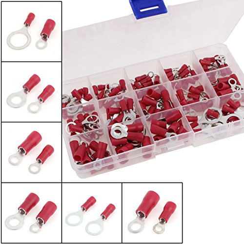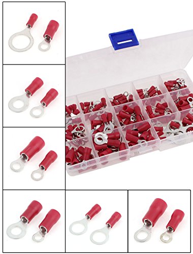 uxcell 端子 電線接続用 絶縁圧着端子セット リング 電気配線コネクタ レッド プラスチック 140個入り